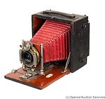 c1902-1910. 3¼×4¼, 4¾×6½, or 8½×6½'' plates, folding camera. Rectigraph lens. Starting 1905 with metal front, and a lot of other lenses.