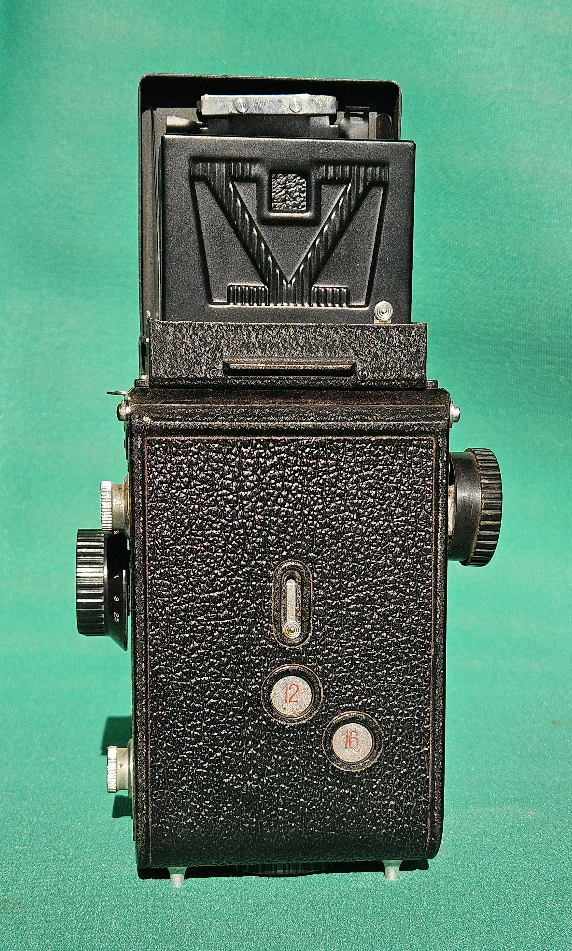 | Voigtländer: Brillant (sheet metal) | 1932 | E 135112 | Per il mercato francese, corpo in metallo E’ una pseudo TLR in quanto non si mette a fuoco tramite visore serial number E 135112 anno di fabbricazione da lettera E = 1933 pellicola 120, 12 pose formato 6x6 Obiettivo Anastigmat Voigtlander 1:7,7 f/7,5 – diaframmi 7,7 – 11 - 22 Messa a fuoco da 1m (Portrait) – Groupe – Infinito (Paysage) Otturatore B, 1/25, 1/50 Con custodia | |||