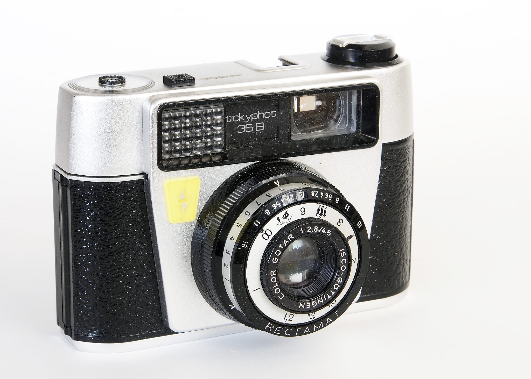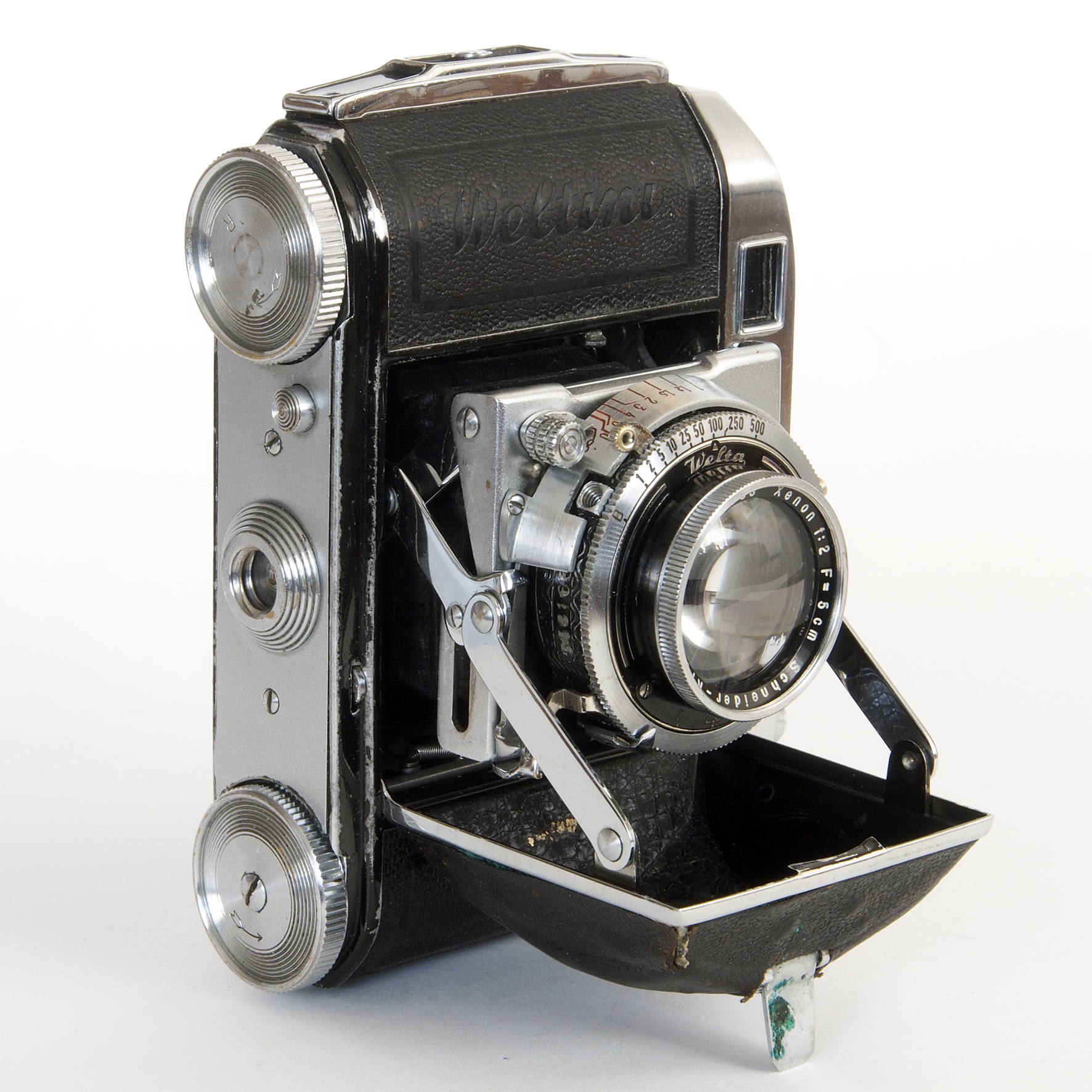 | Demaria Freres: Telka II | c1950 | none | April 22, 2022 | Demaria-Lapierre on lens face. Demaria-Lapierre Manar 1:3,5 F=7,5 cm inl 1-250+B in Prontor. Exposure combinations for 25 ASA film shown in four windows of the front plate approximately according sunny 16 rule. #958 | ||